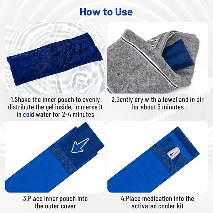 No ice and refrigeration;Long-lasting coolness;Water activated;Reusable;Light and compact