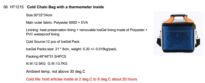 Detachable inner liner, easy to clean, lightweight and portable, molded EVA bottom with strong load-bearing capacity, the bag body does not deform, waterproof and moisture-proof, maintain 2-8 degrees for up to 20 hours